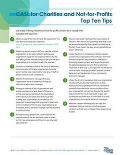 List of the top 10 things charities and not-for-profits need to do to comply with Canada's Anti-Spam law. TIP SHEET 2015