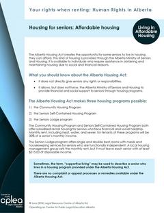 The Alberta Housing Act creates the opportunity for seniors to live in housing they can afford. TIP SHEET 2019 CURRENTLY NOT AVAILABLE A new updated version will be available soon!