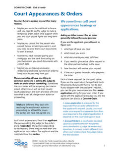 For civil and family court, information about going to court to ask the judge for an order. BOOKLET 2021