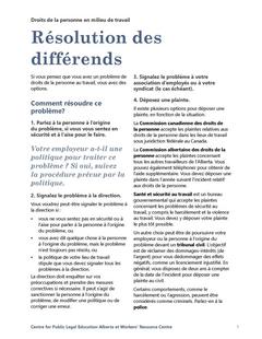 Si vous pensez avoir un problème de droits de la personne au travail, cette fiche d'information explique comment vous pouvez résoudre votre problème. TIPSHEET 2021